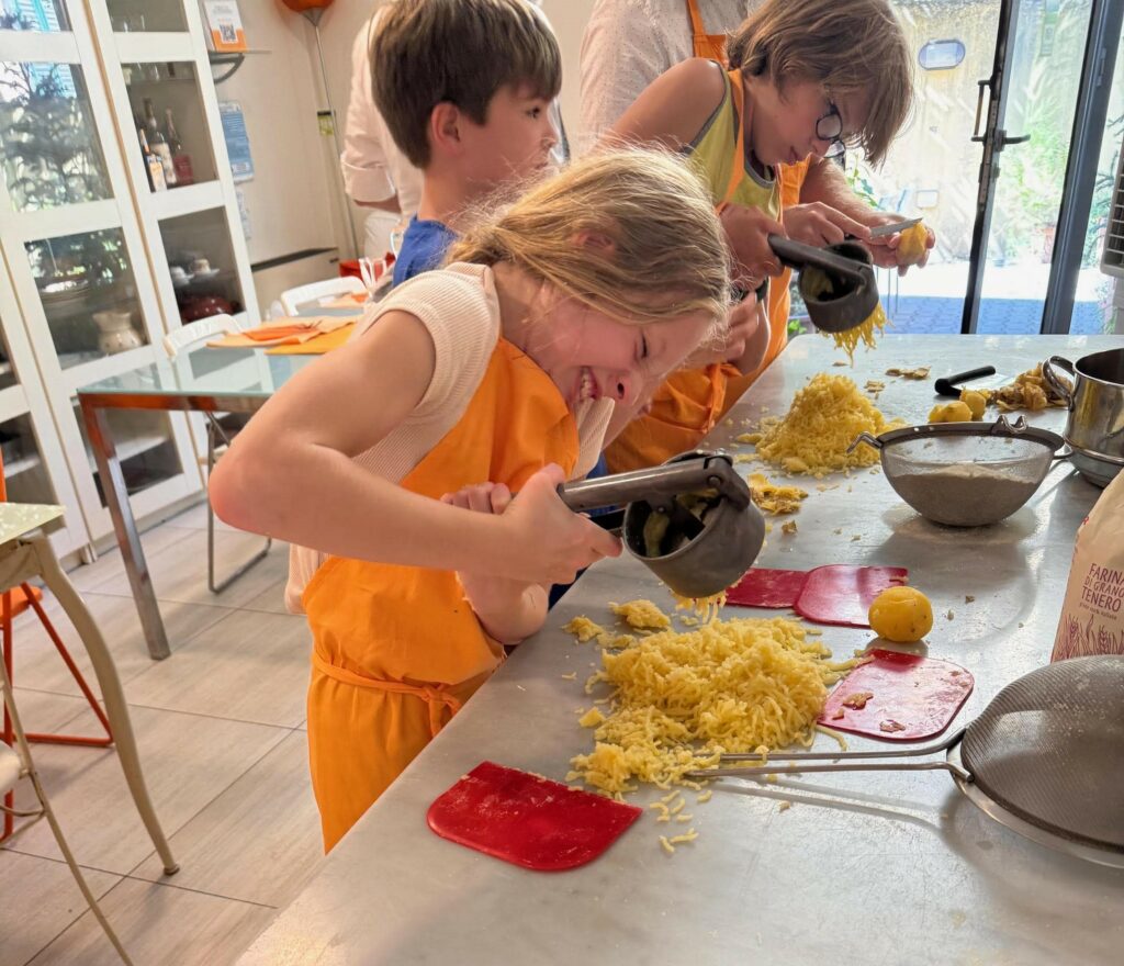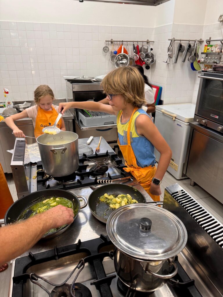 Amanda tells me that they enjoyed the experience (and the food) so much that this year, when they returned to Italy, they couldn’t help but bring their children here. And also their friends, Morgana and Gerren, with their children Wyatt and Everett. Here they are: they took part in the manual part and listened to the technical part with great interest