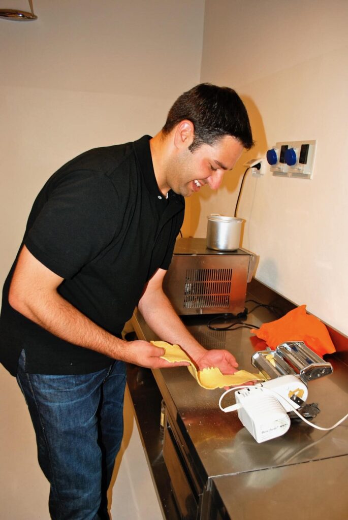 Chris looks amused: maybe he didn’t expect to be able to make pasta!
