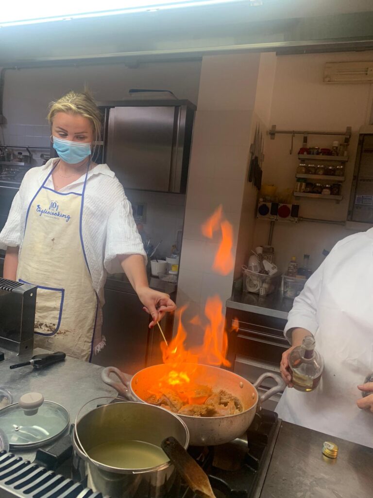 The last touch is the caramelization got lighting a fire in the pan with the help of a strong Brandy.