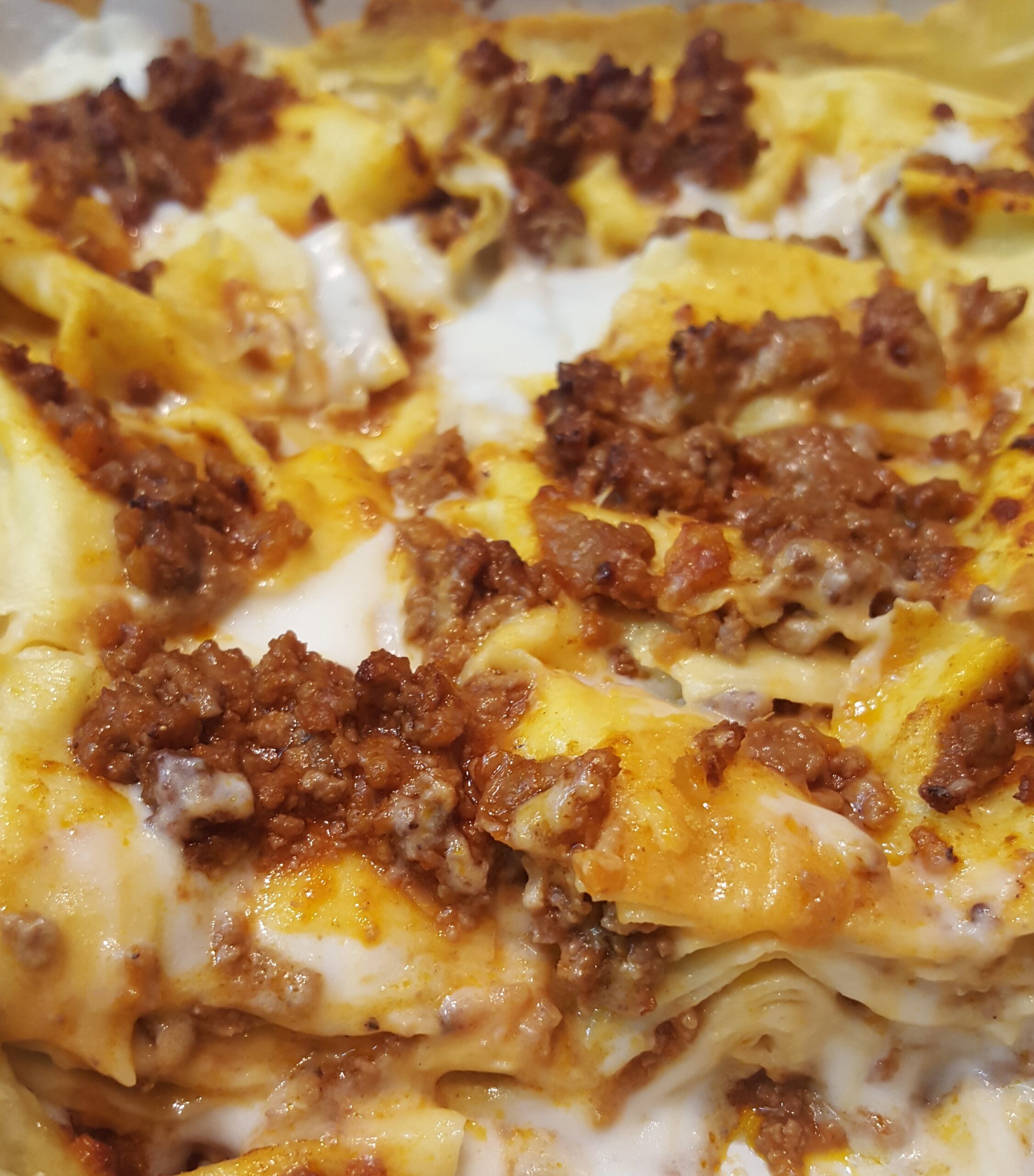 …. make the dough, roll it out, cook it and cool it. Making the ragù. Fare il ragù. Make the bechamel Grate the Parmigiano Reggiano. Assemble the different preparations and