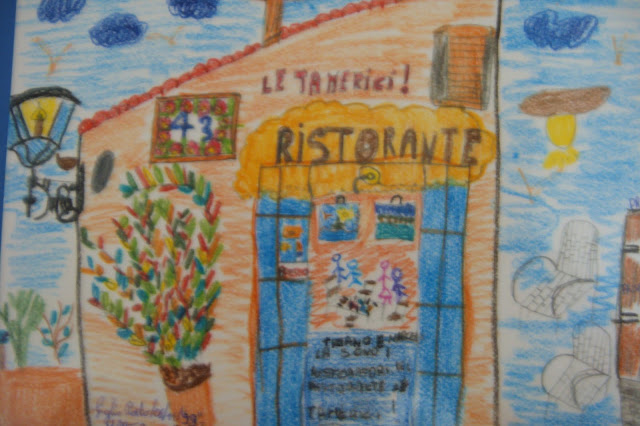 The color of the writing is turquoise, becouse turquoise was the color of the table clothes at the Restaurant Le Tamerici. The Restaurant Le Tamerici was sold at the beginning of 1997,