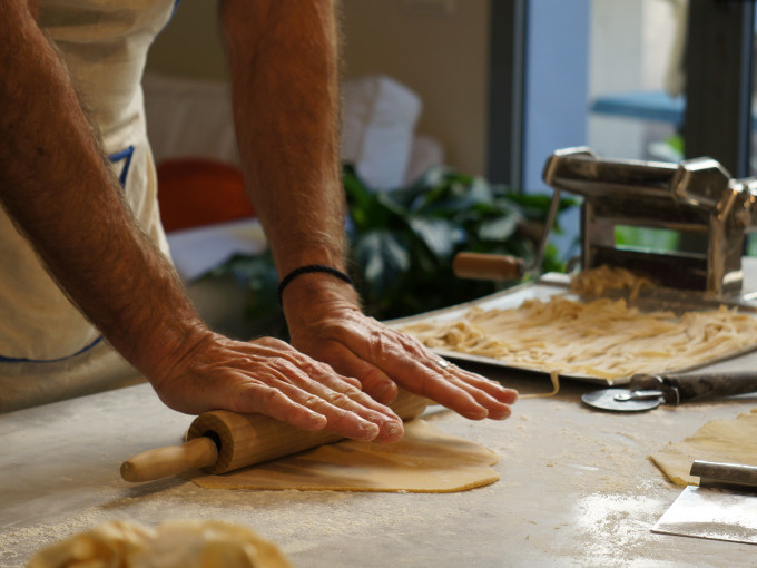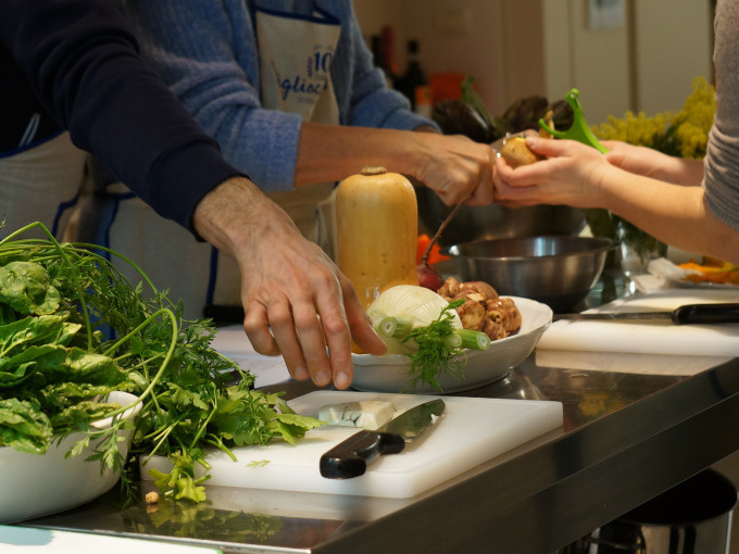 At the end of each session, participants gather around the table to enjoy what they’ve cooked together — sharing food, stories, and the Tuscan way of life.