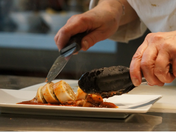 - Menu 1: Liver Terrine with Apples and Pistachios – Spinach & Ricotta Ravioli – Guinea Fowl with Pomegranate – Marcella’s Apple Pie