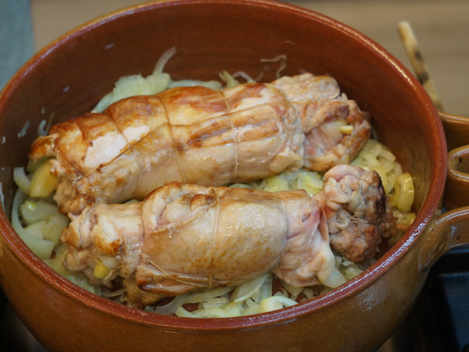 - Menu 2: Croutons with Mixed Vegetables – Chickpeas & Radicchio Soup – Pork Fillet with Mushrooms – Chestnut Crêpes