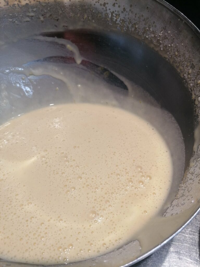 Add, alternating them, the extra milk and the flour.