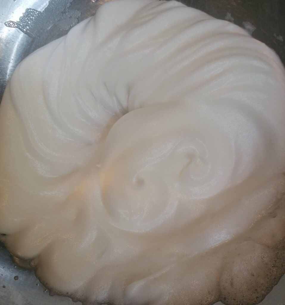Add the third white to the bowl and whip until stiff
