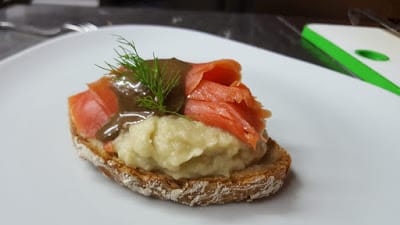 With this black rich sauce I have dotted a bruschetta with smoked salmon and puree of fennel bulb.