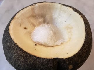 Make a little hole on the bottom of a black turnip