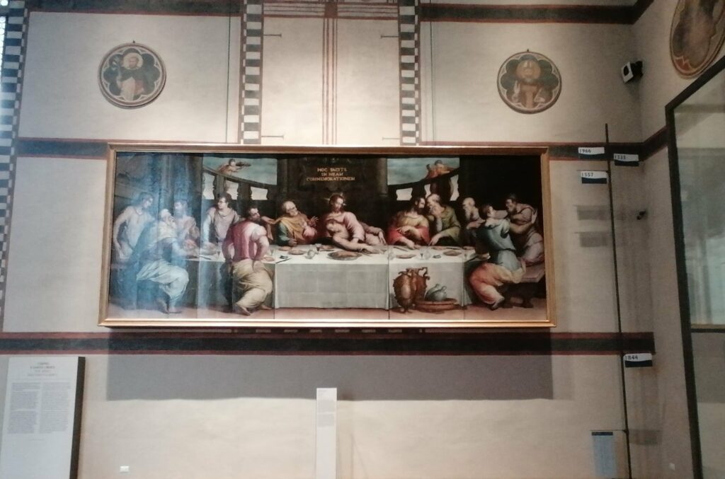 The Last Supper by Giorgio Vasari immediately illuminates those who enter the refectory of the Franciscan monastery of Santa Croce, with its colors, vivid expressions, faces and figures almost carved on the canvas.