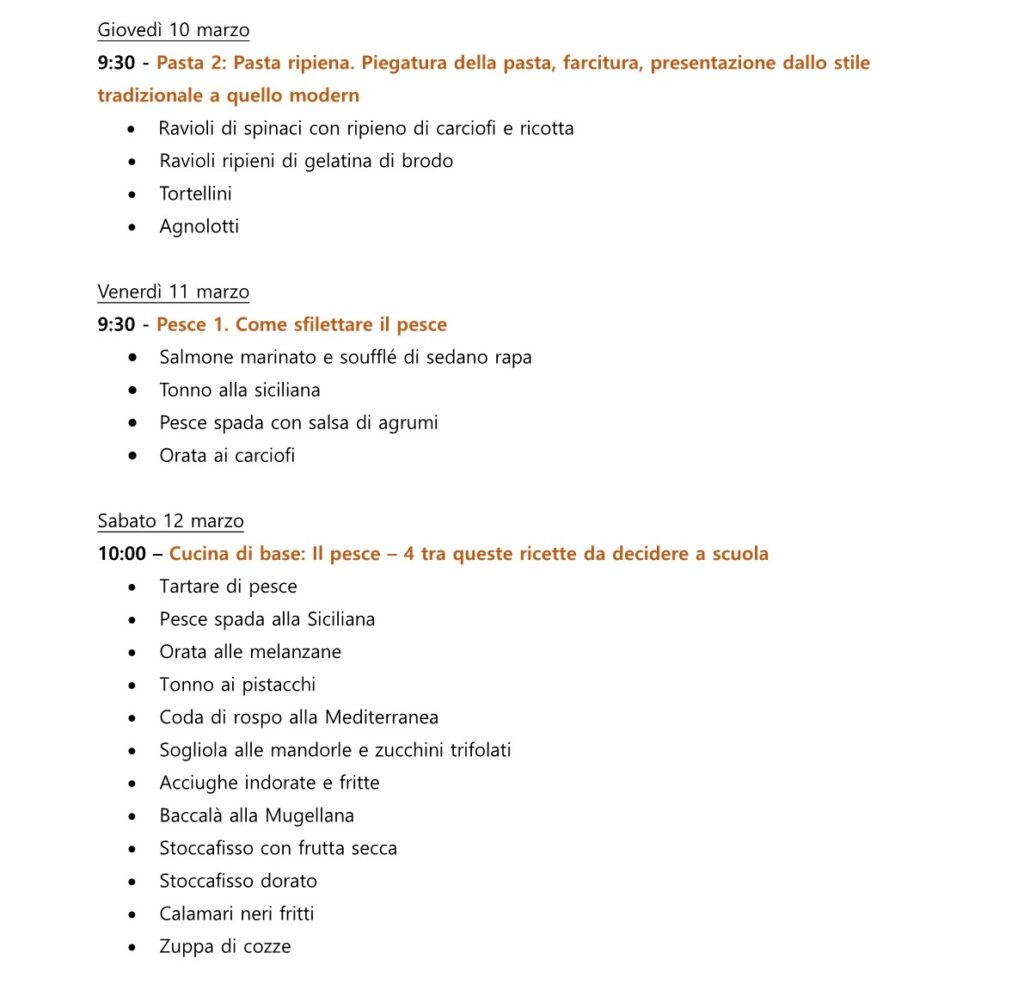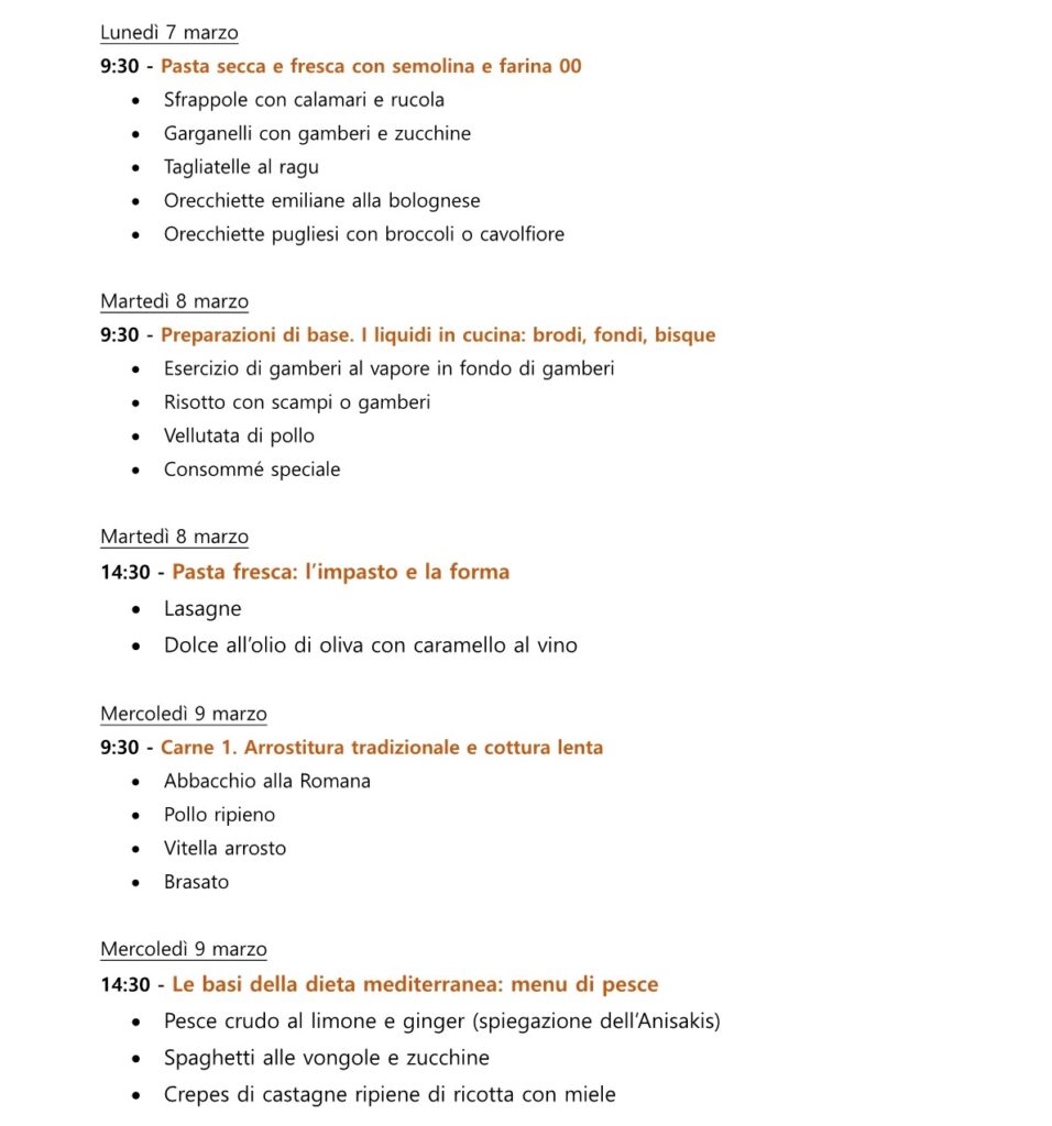 La lezione è completamente pratica e lo Chef ti guiderà nella preparazione dei piatti.