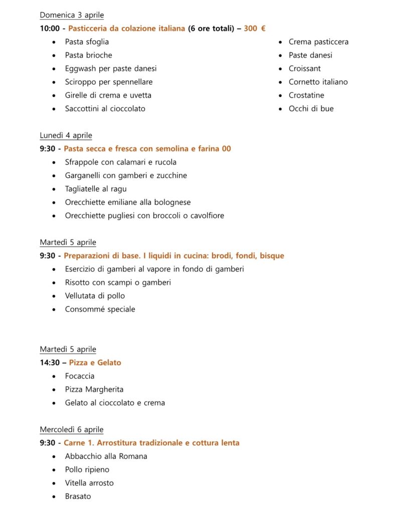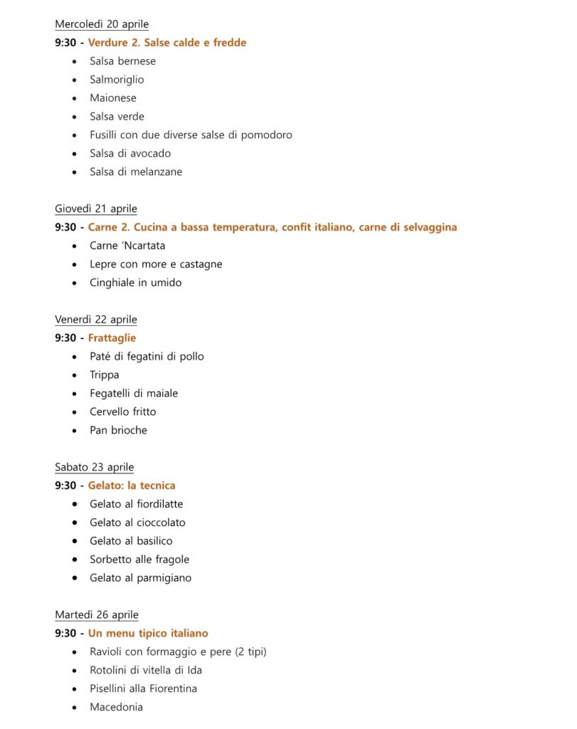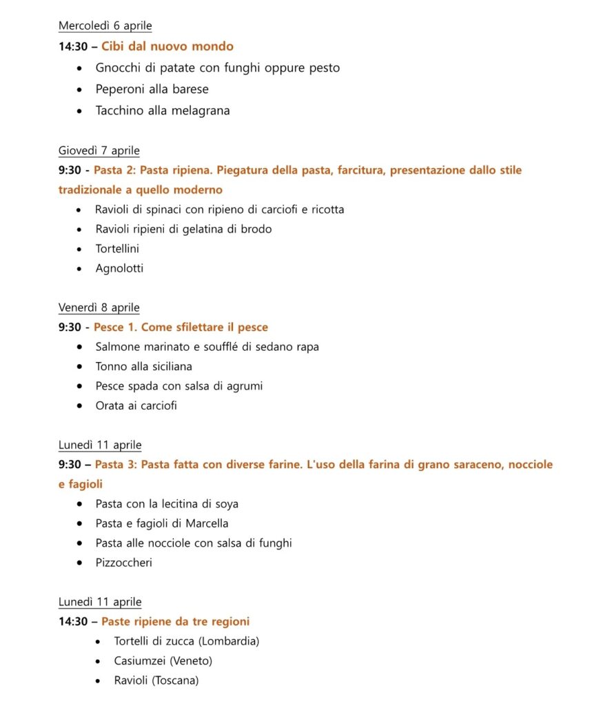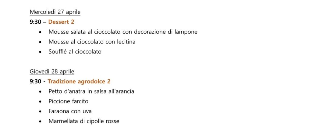 La lezione è completamente pratica e lo Chef ti guiderà nella preparazione dei piatti.