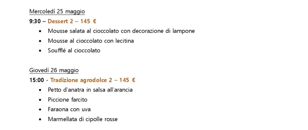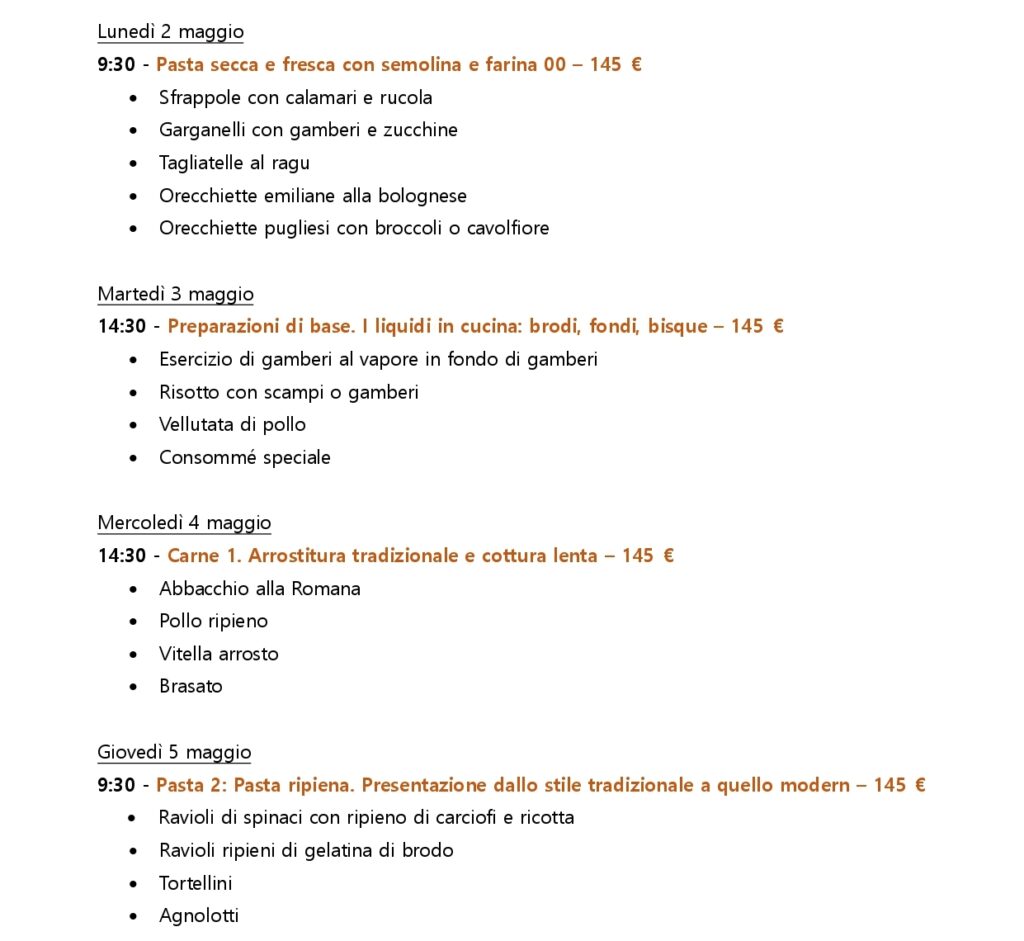 La lezione è completamente pratica e lo Chef ti guiderà nella preparazione dei piatti.