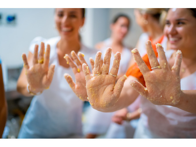 Tutti partecipano attivamente durante tutta la lezione — non è uno show cooking, ma una vera esperienza culinaria!