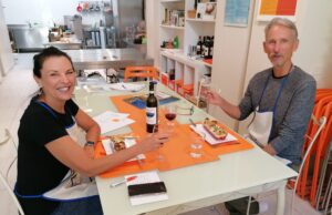 Non sono passati molti anni. Solo pochi mesi. Ha frequentato con me un corso di cucina presso l’istituto dove insegnavo a Firenze, in Toscana. Ma non mi aspettavo di trovarla (o chiunque altro, in un Paese così grande!) Anche perché doveva essere in California … dalla parte opposta. È stata chiamata per essere assunta dal negozio di cucine, che in realtà era una scuola di cucina, per via dei suoi studi in Italia. È stata assunta per ricoprire la posizione di direttore !!