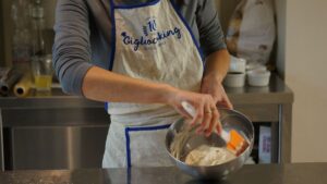 Seguire le istruzioni per il temperaggio, poi “foderare” gli stampini e tenerli in frigo prima di sformarli.