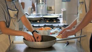 Pulire i carciofi eliminando le foglie dure esterne. Tagliarli a metà e togliere la peluria all’interno. Affettarli sottilmente nel senso della lunghezza. Immergerli in acqua e limone per prevenire l’ossidazione. Cuocerli in padella con aglio, olio d’oliva, sale e un po’ d’acqua. Tenere da parte.