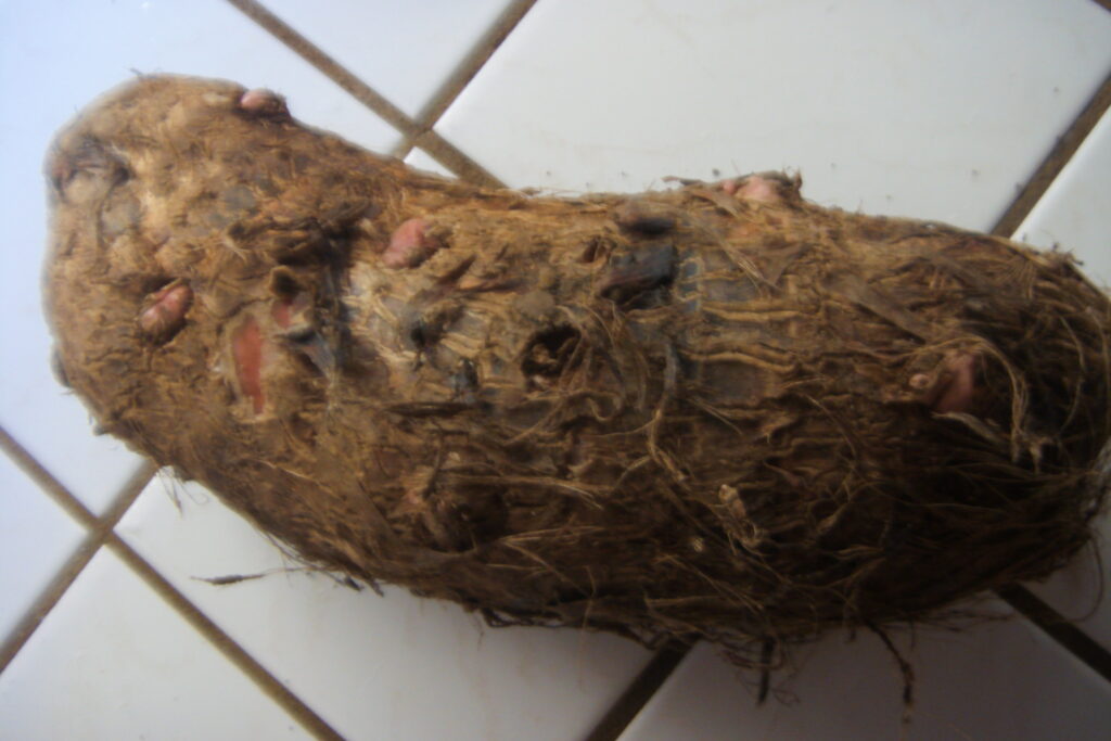 Tubercoli, plantani, mais, carote, una volta pelati e tagliati, vanno cotti nel brodo di carne filtrato. A metà cottura unire la carne con il suo fondo di cottura; una ventina di minuti prima della fine della cottura unire le palline di banana verde e le palline di grano. Condite con sale.