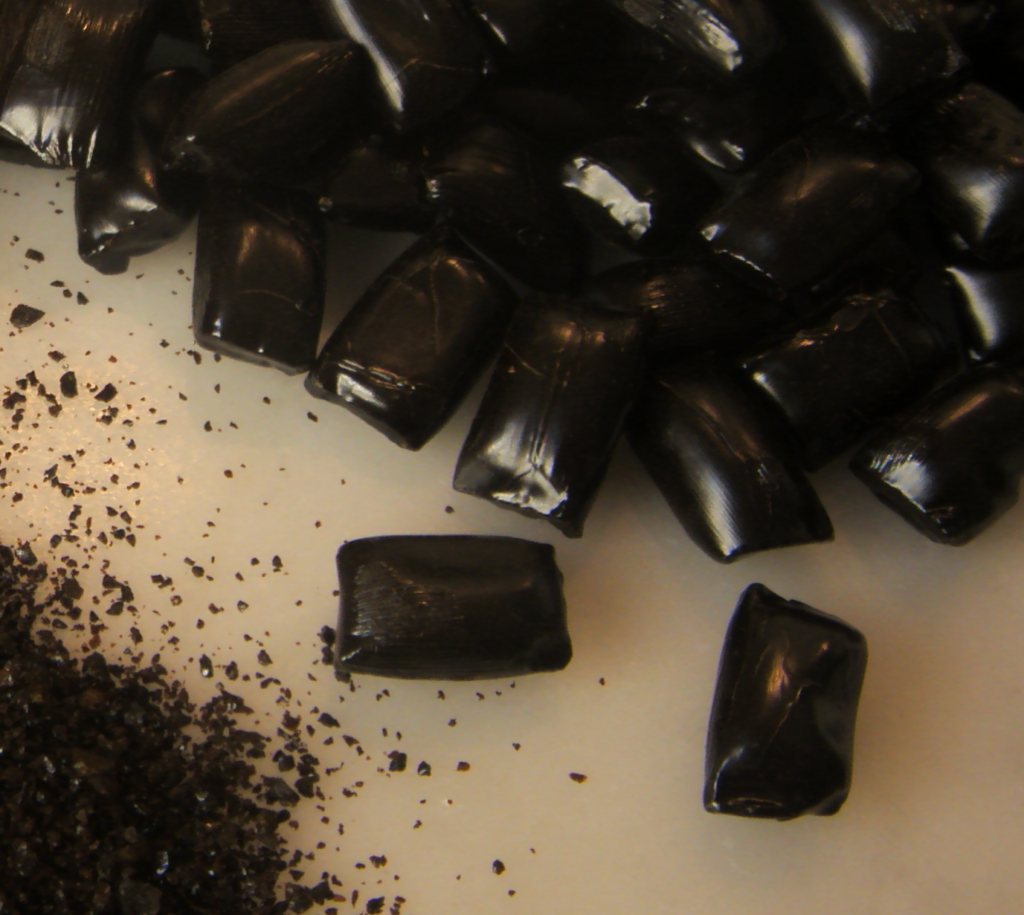 There is a packet of pure licorice cubes in the trouser pocket. Idea. I put them in the mixer, mix them with pepper and salt, roll the meat into the mixture.