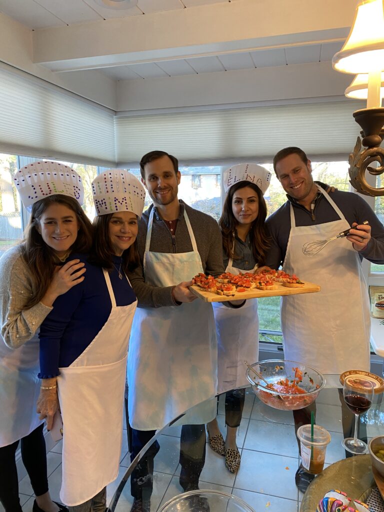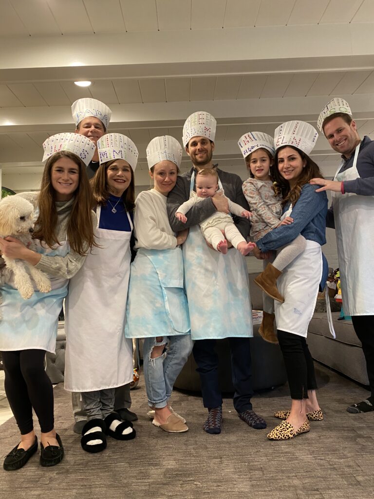 The whole family gathered in front of the sceen in the comfort of their home, to cook: