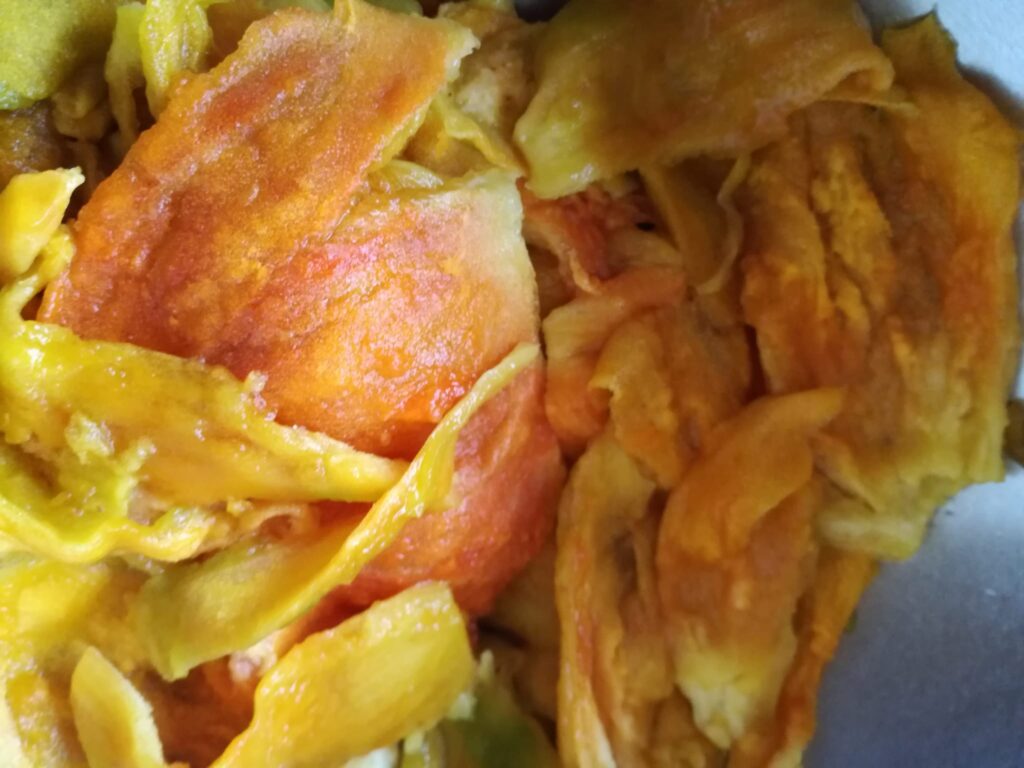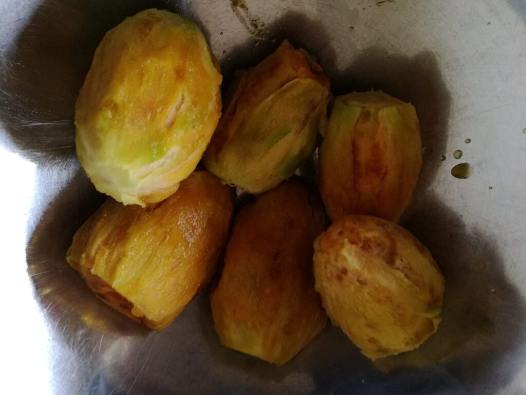 The “external” pulp – you see in the photo – must be cut inthin strips or small cubes and kept separated from the inside pulp.