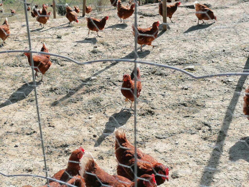 - – We made them, just us, with our hands. We cleared the ground, dug, drilled, glued…. And here it is. The first building was that chicken coop up there, verse. This little red house is the latest in chronological order. Here is the egg packing room. –