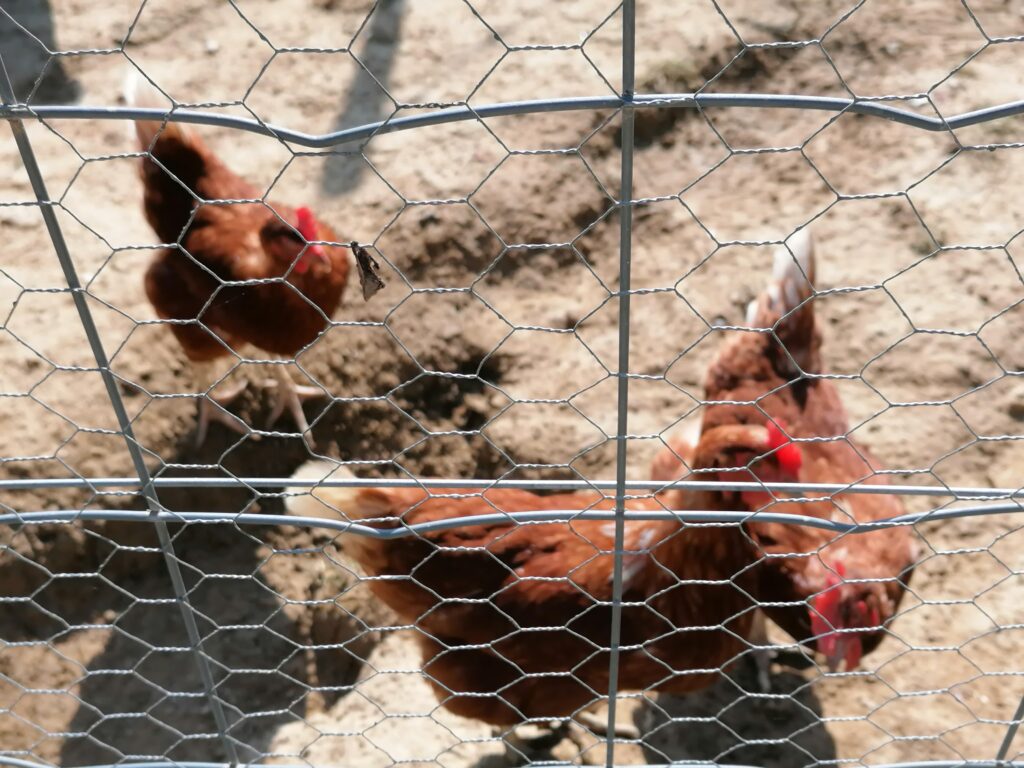 then I visited the hens, equipped with shoes so as not to pollute their soil.