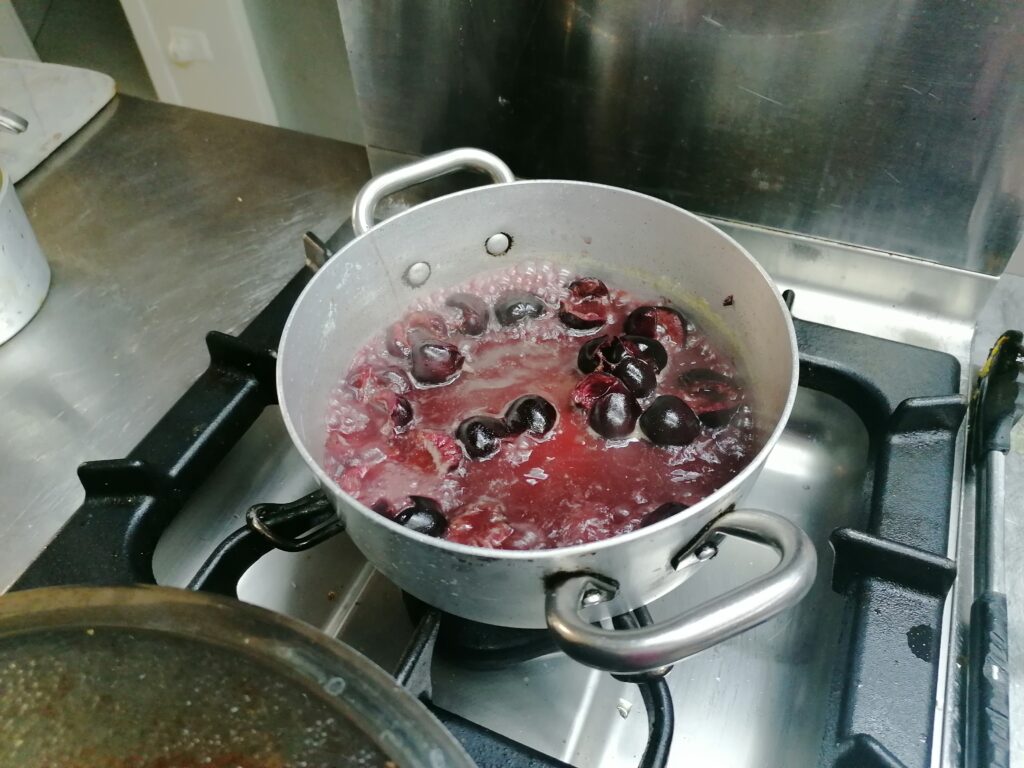 Don’t worry: you will have time to stone the cherries – or sour cherries – while the meat cooks gently.