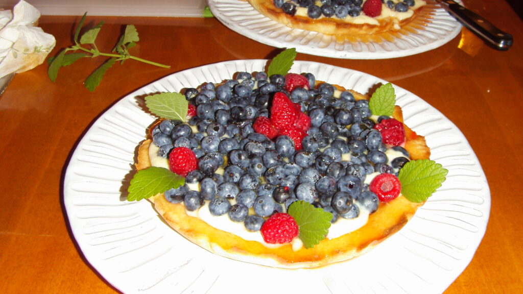 Blueberries with something else around: shortcrust pastry, custard, lavender syrup …. (?)