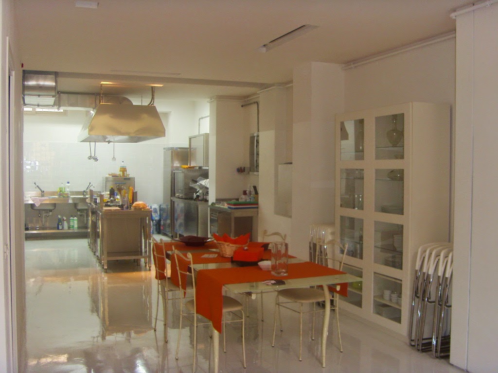 As you enter the school you will be embraced by a warm atmosphere of welcoming and you will feel immediately comfortable.The essential furniture, the lights, the spaces, the colours will predict the expectation of exchange, communication, learning while teaching and beginning of lasting relationship of friend-ness with both participants and chef.