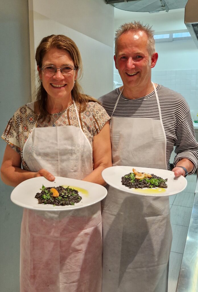 Here they are Marion & Eric, proudly showing their black risotto with squid ink.