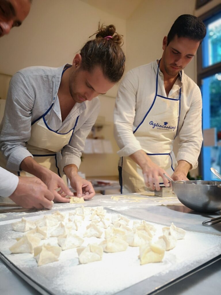 As they worked, they kept joking. The lesson was very pleasant, fun: we talked, laughed, joked, learned, cooked, ate. The boys also “mocked” those who do not know how to cook, in a benevolent and light way, talking about themselves in the third person … as only the Tuscans know how to do.