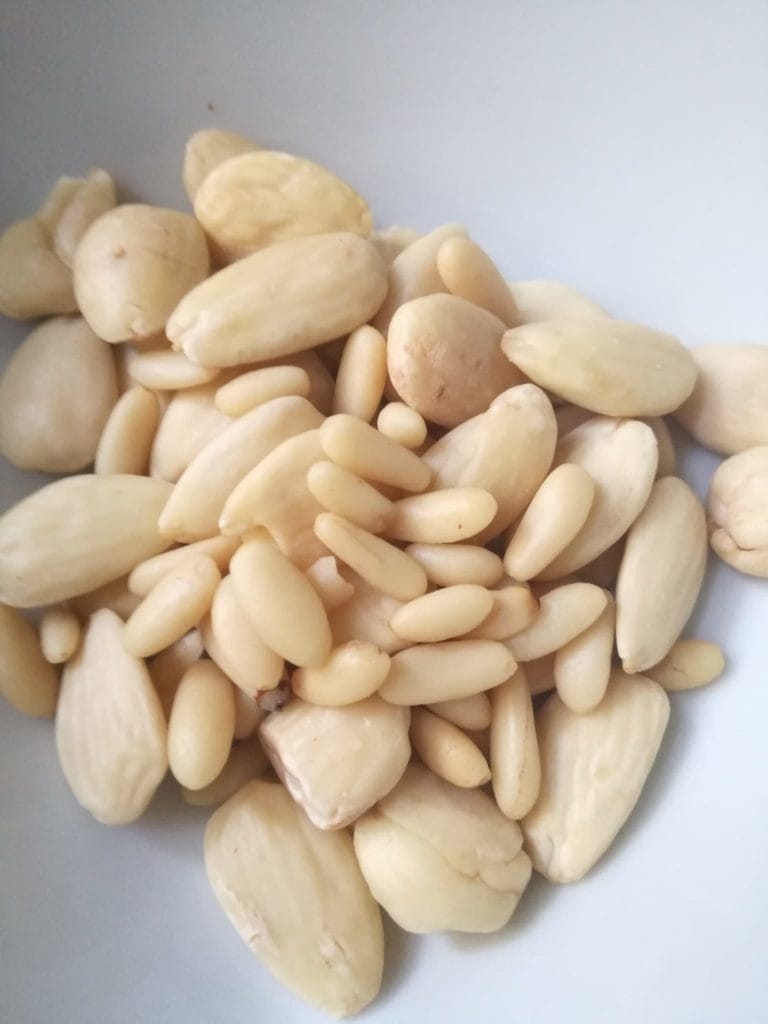 Macinare le mandorle, i pinoli e l’aglio in un robot da cucina ricordandosi non lavorare troppo o le noci diventeranno oleose.