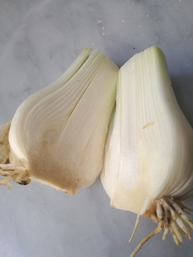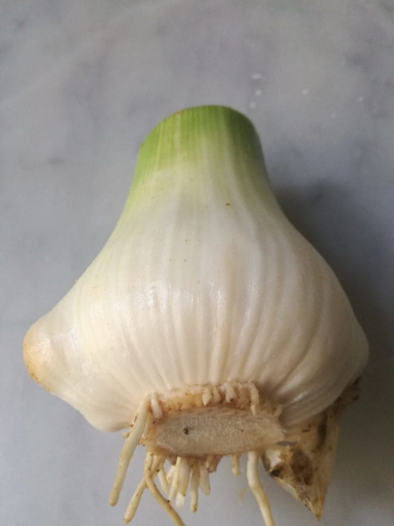 2 spicchi d’aglione ( io ho usato un quarto di bulbo dell’aglione fresco – gli spicchi non si sono ancora perfettamente separati. Questo aglione è ancora più delicato