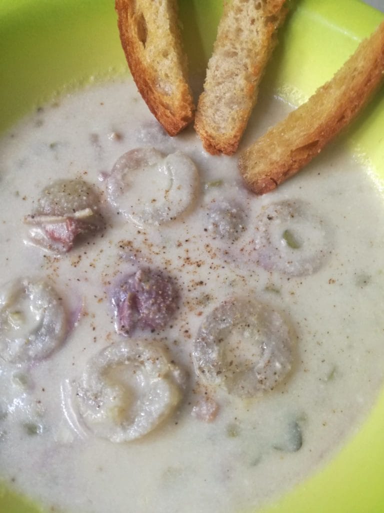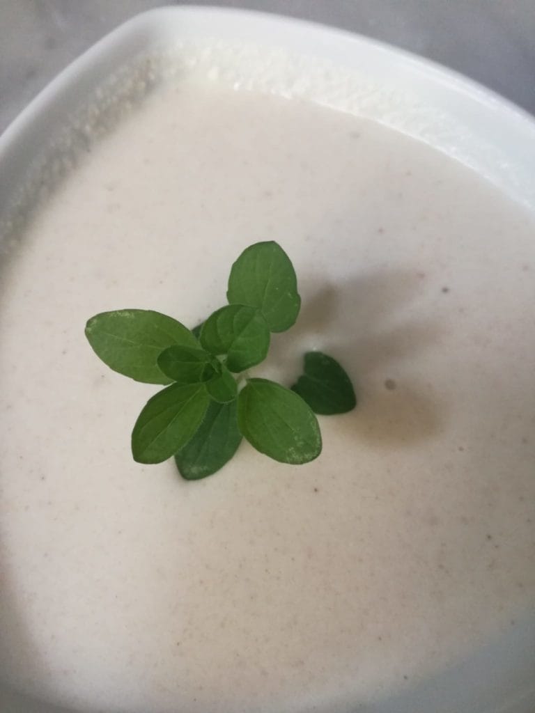 A questa zuppa si possono aggiungere foglioline di maggiorana fresca e può essere servita con crostini conditi con olio e sale. Insolita ed elegante.