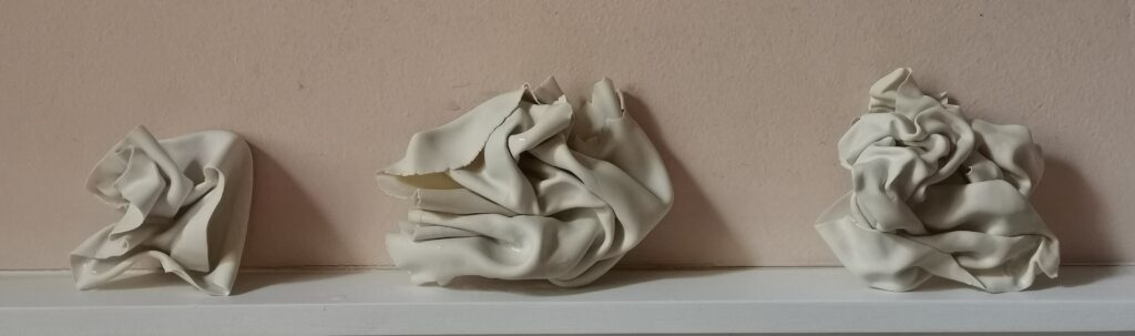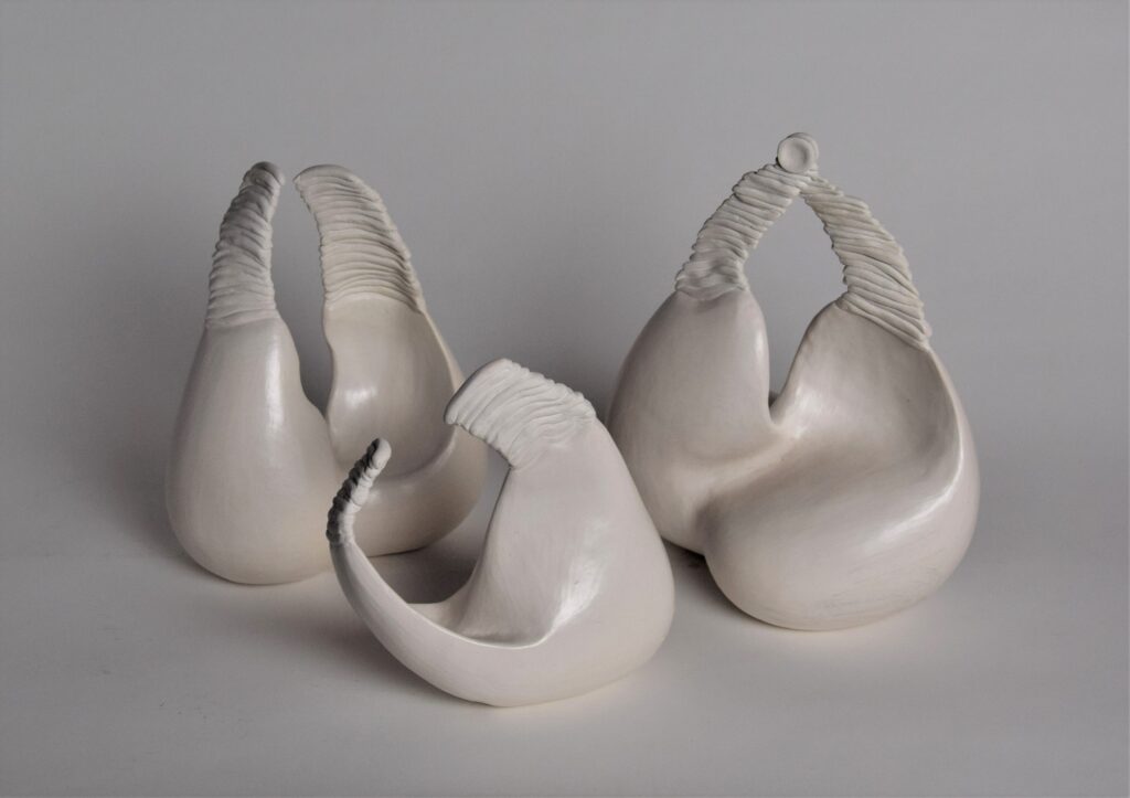 These white ceramics for me represent the contortions of the spirit, but also the awareness that they will unravel.