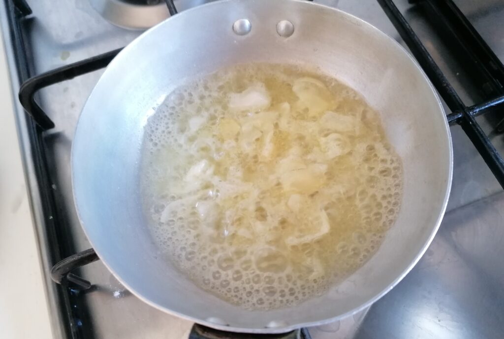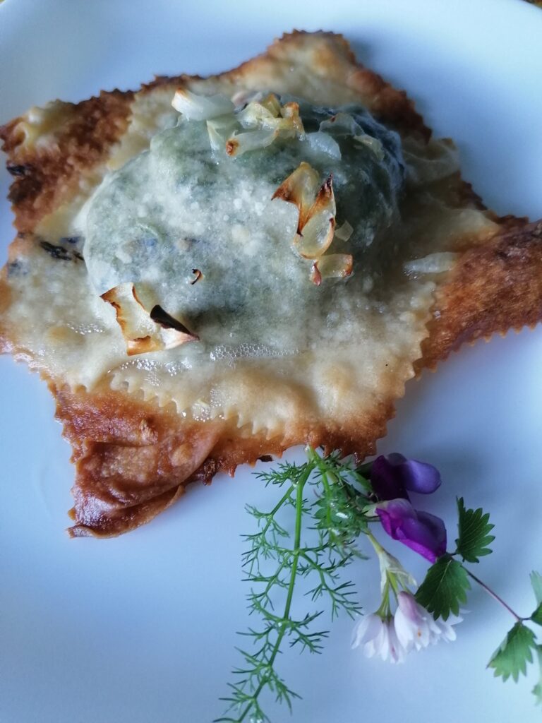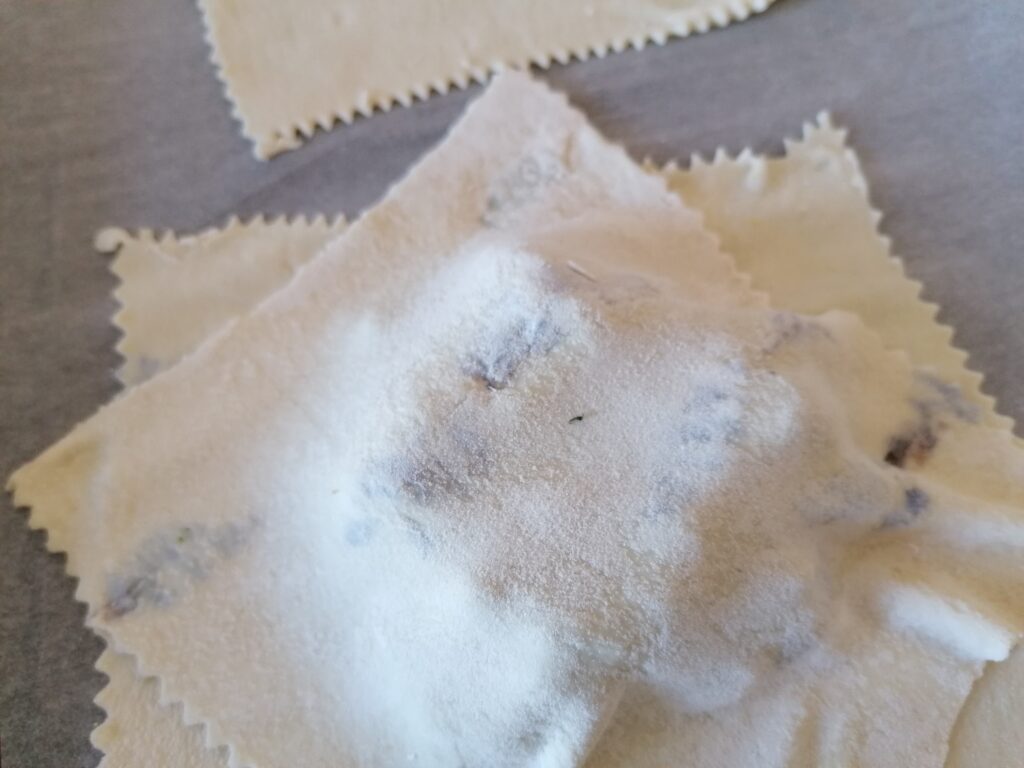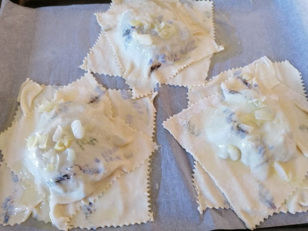 I distribute the “garlic” butter on the ravioli.