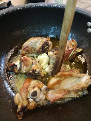 A lid can be put, causing a light steaming, to allow the cooking at the bone.