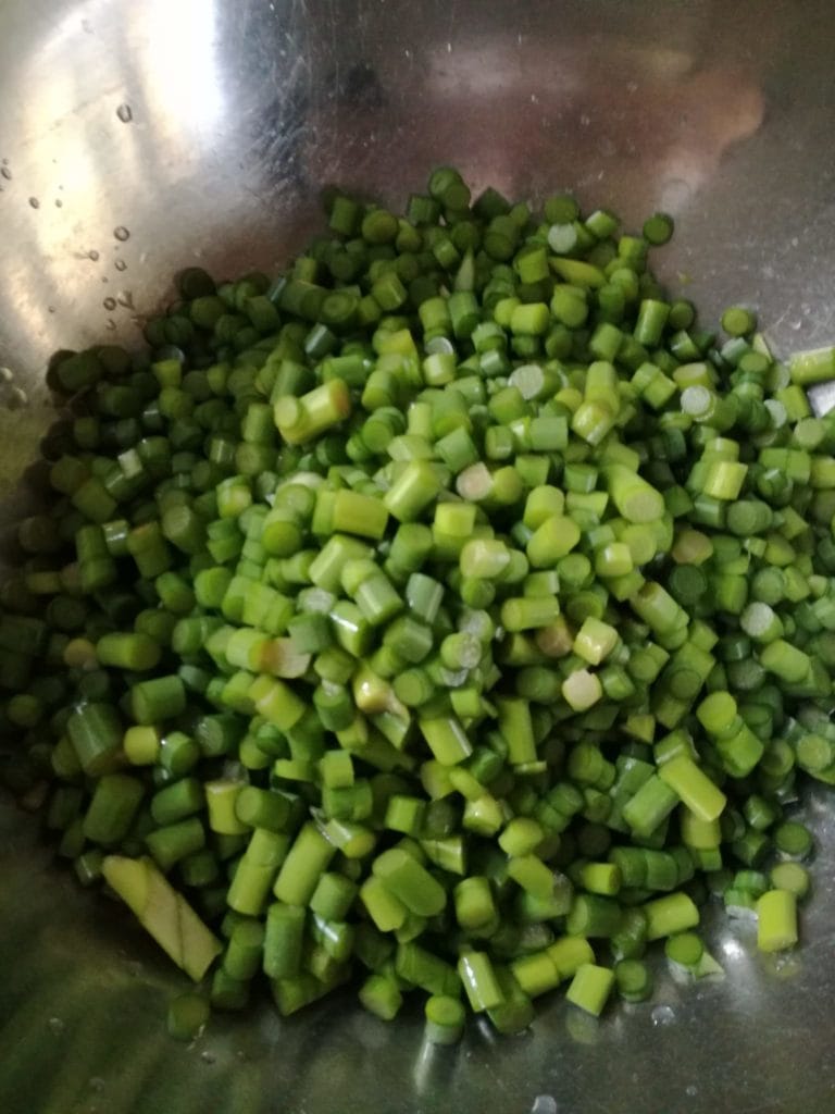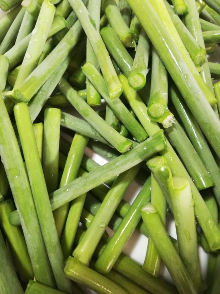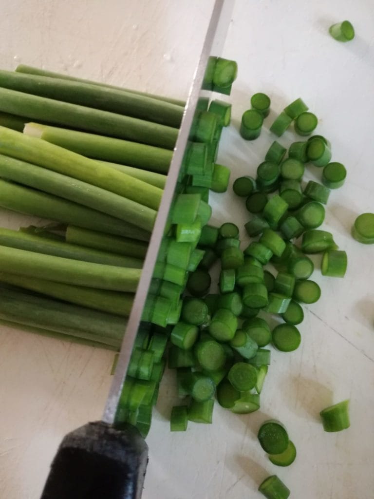 Tagliate finemente i germogli teneri e verdi dell’aglione.