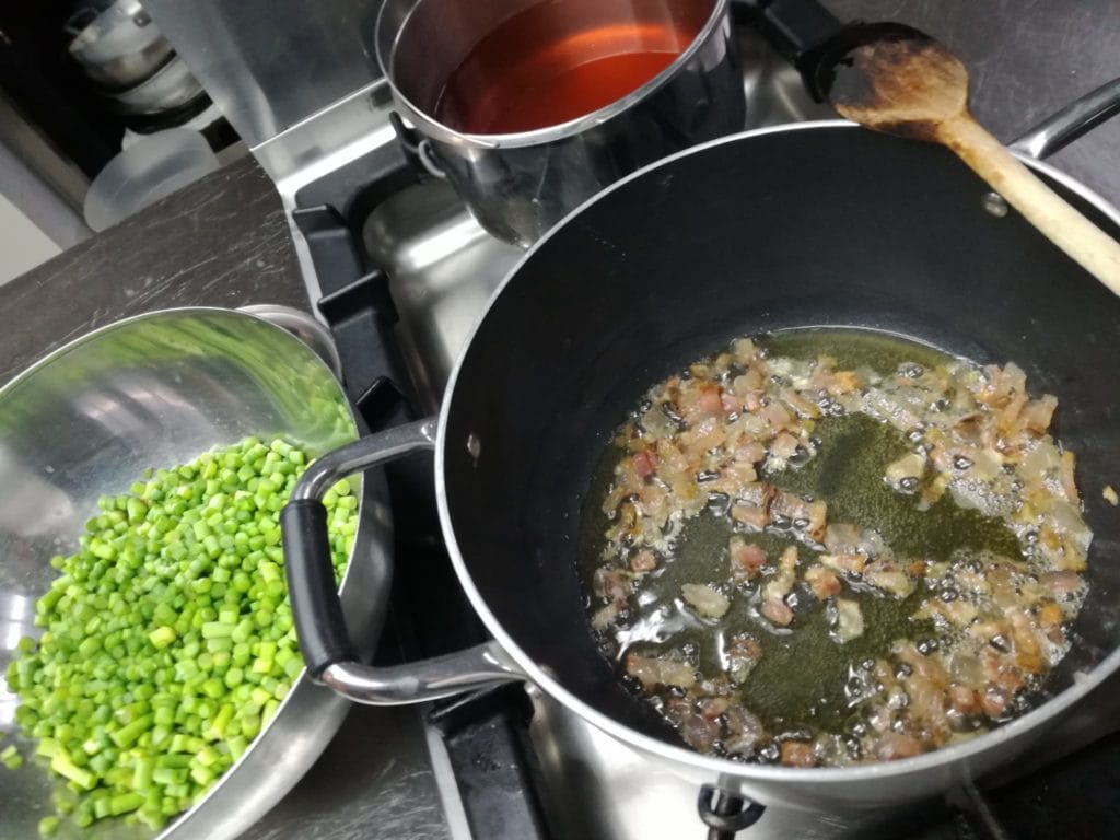Tenete da parte una pentola di acqua bollente o, meglio, un buon brodo vegetale da versare, mestolo per mestolo, fino a che si raggiunge una consistenza soffice Non fate mai “friggere”, ma lasciate cuocere dolcemente.