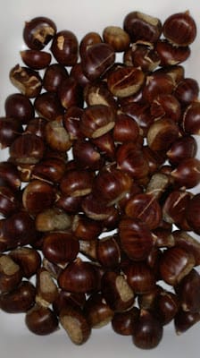 What a perfect match: peeled roasted chestnus inside a glass of new wine.