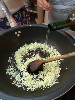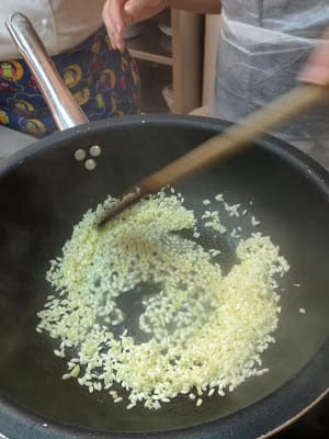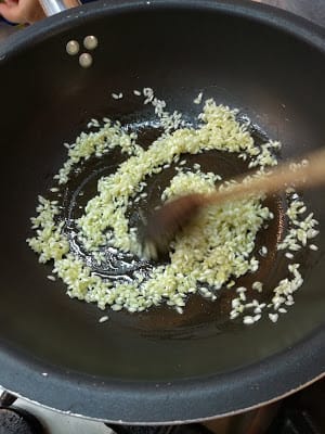 The first “step” is the “toasting”.In Italy we say “Toast the rice” but we don’t really mean “to toast”, like we would do with coffee beans. It means, rather, “to fry”.