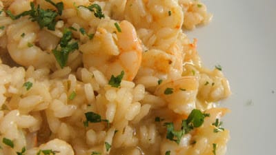 This is Risotto with Shrimps. The broth is made with the heads and the shells of the shrimps.