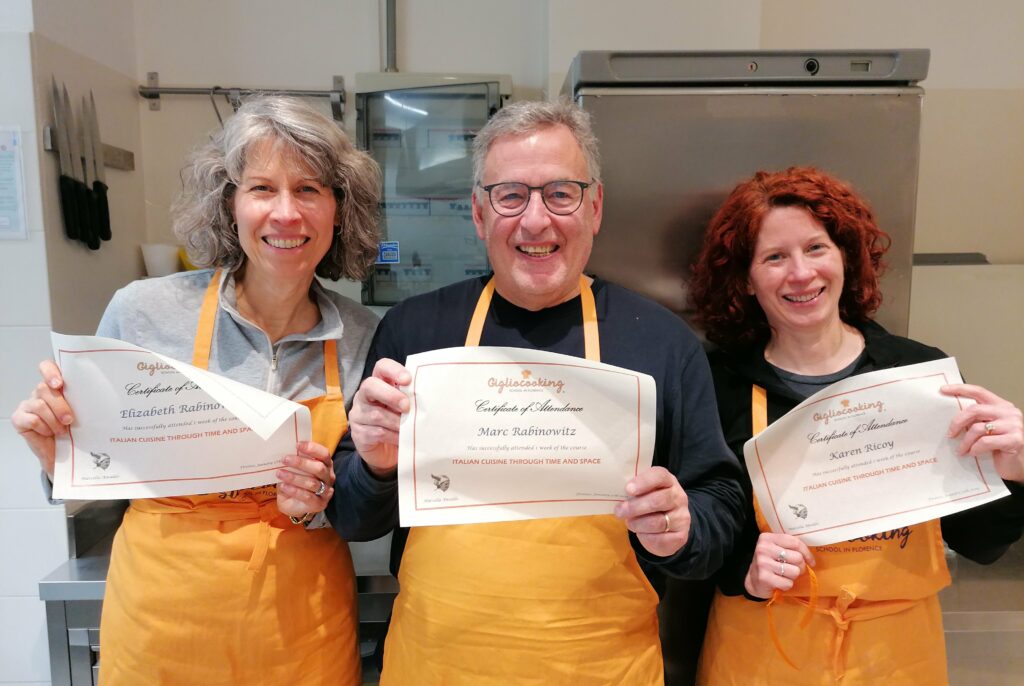Marc & Elizabeth decided to take the first week of the monthly course. Against Elizabeth’s expectations, Marc COOKED! not only he cooked: he scaled and gutted fish, the chopped vegetables, he kneaded pasta and HE HAD FUN! Elizabeth says that, at home, he doesn’t even enter the kitchen!