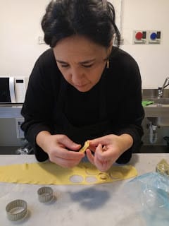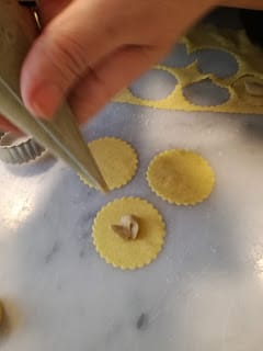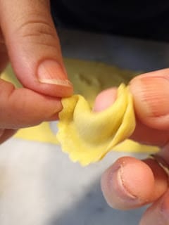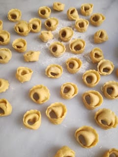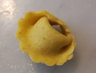 Ha fatto un ripieno di purea di melanzana e con perizia “emiliana” ha farcito magnifici piccoli tortellini.