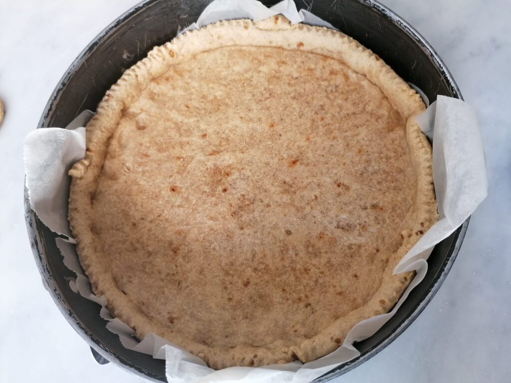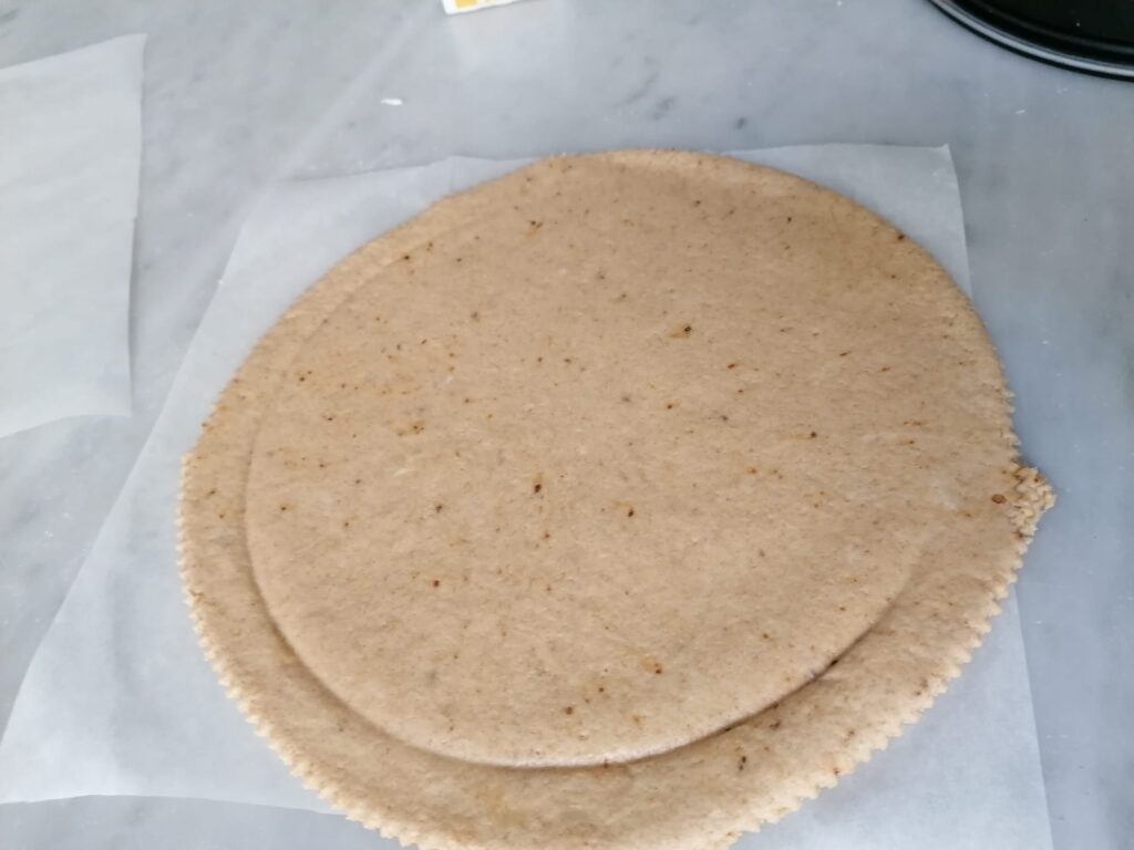 Place the paper with the round pastry inside the pan, risind the border up and refiling with a teethed wheel.