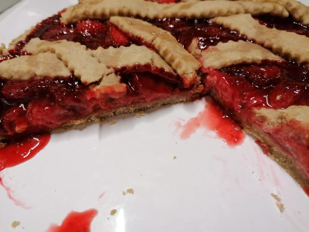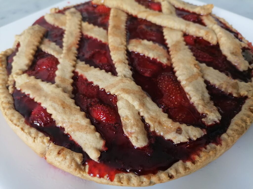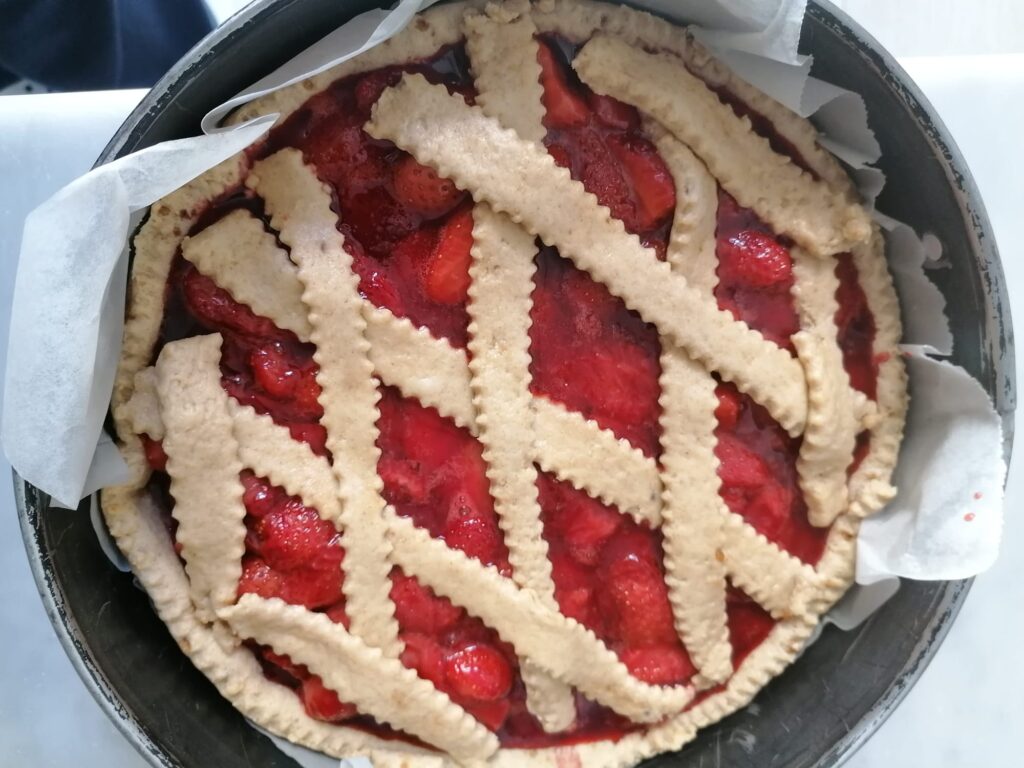 Pour the compote on the pastry and make a lettice with the remaining dough.
